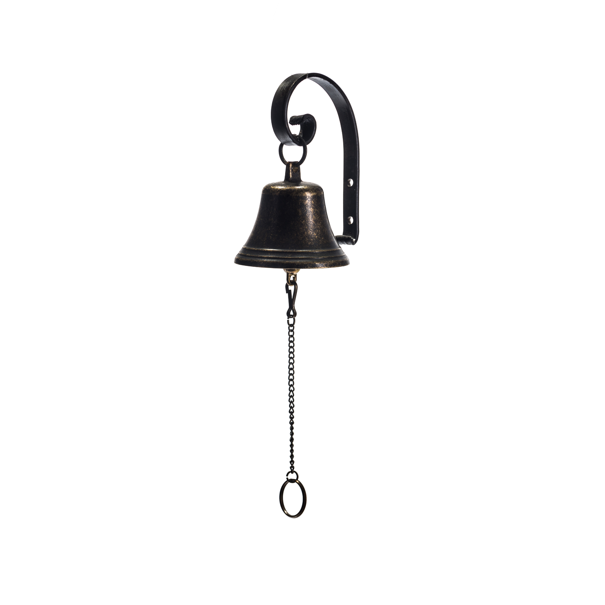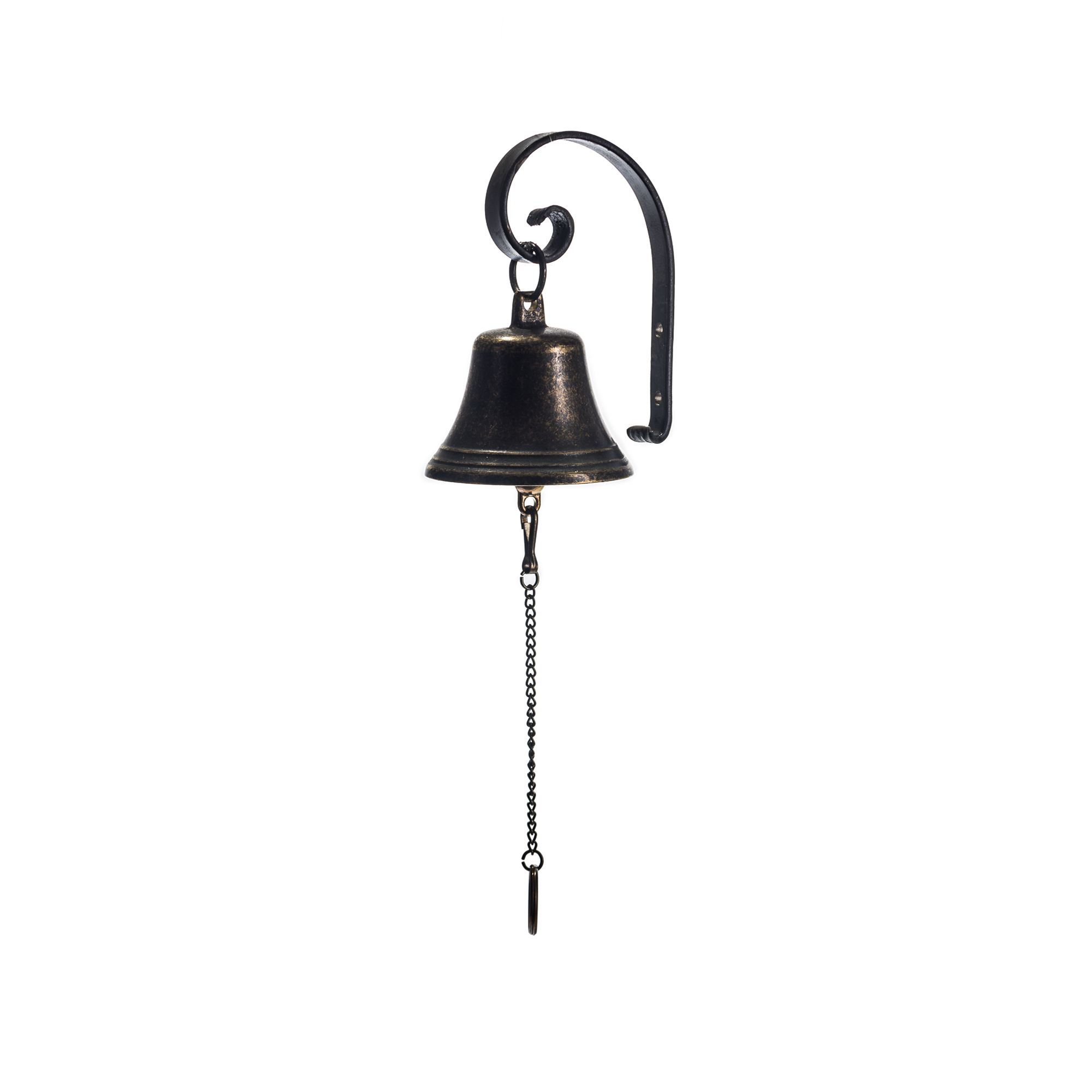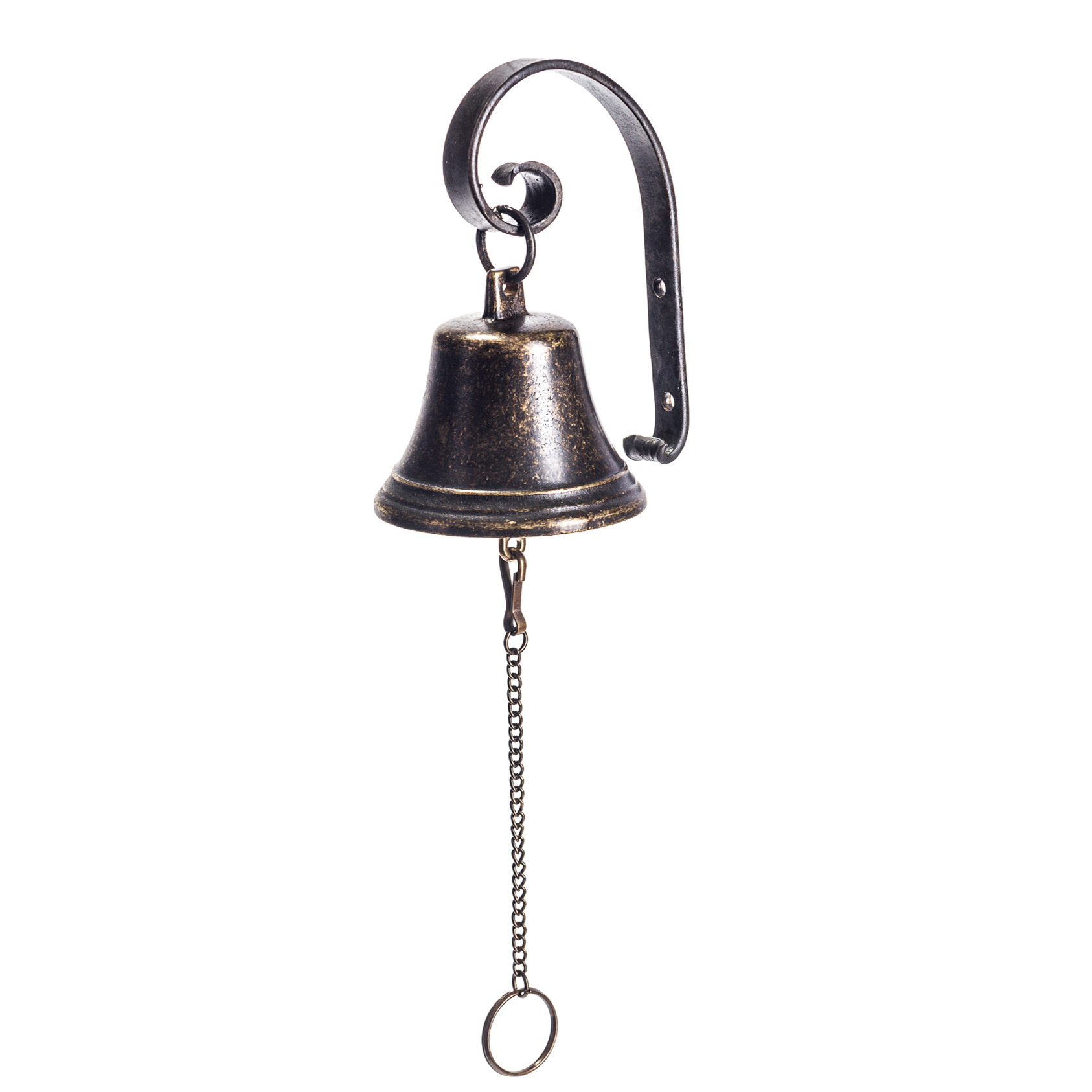 Bronze wall hanging bell diam. cm.8, with wrought iron support.