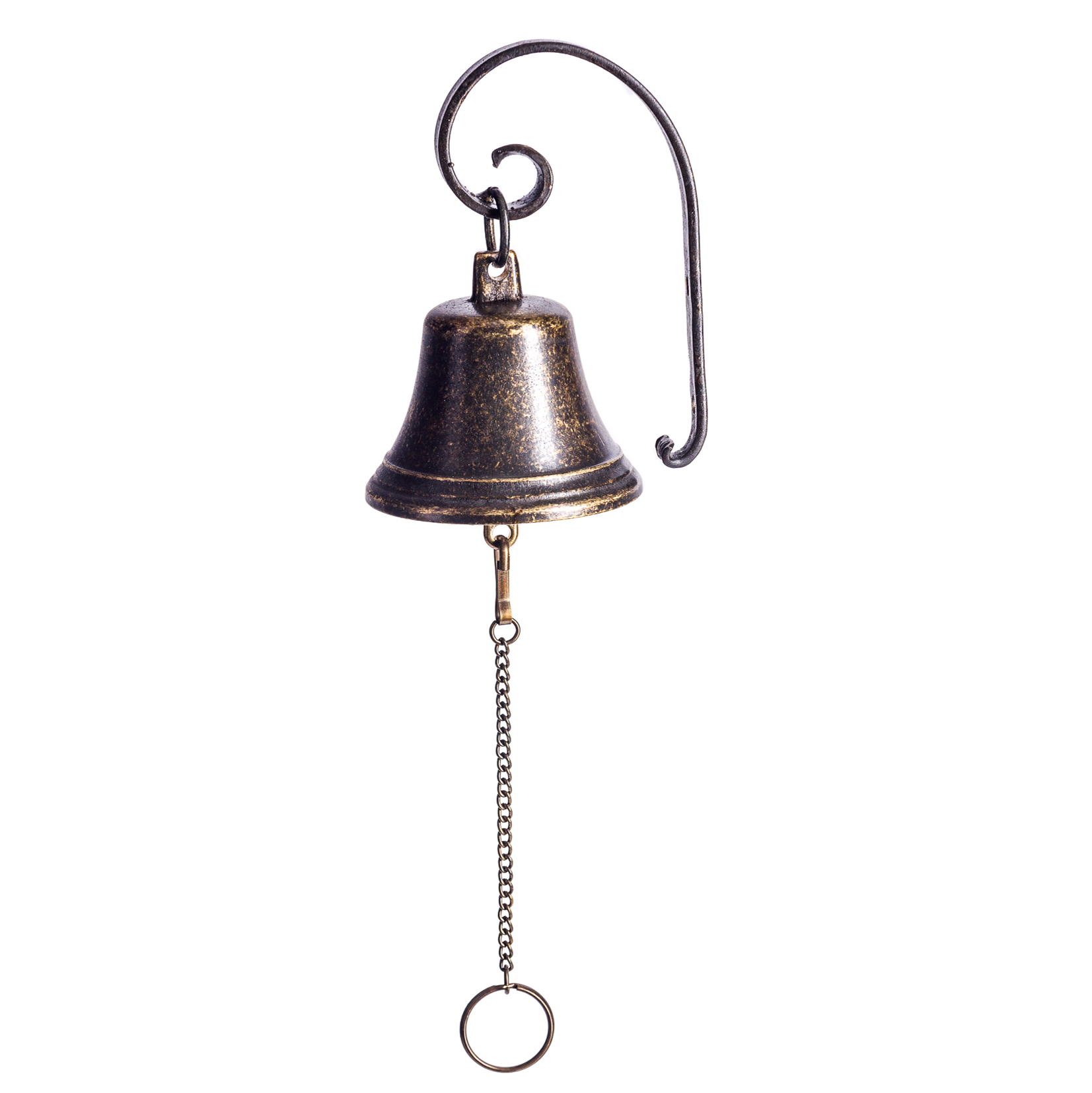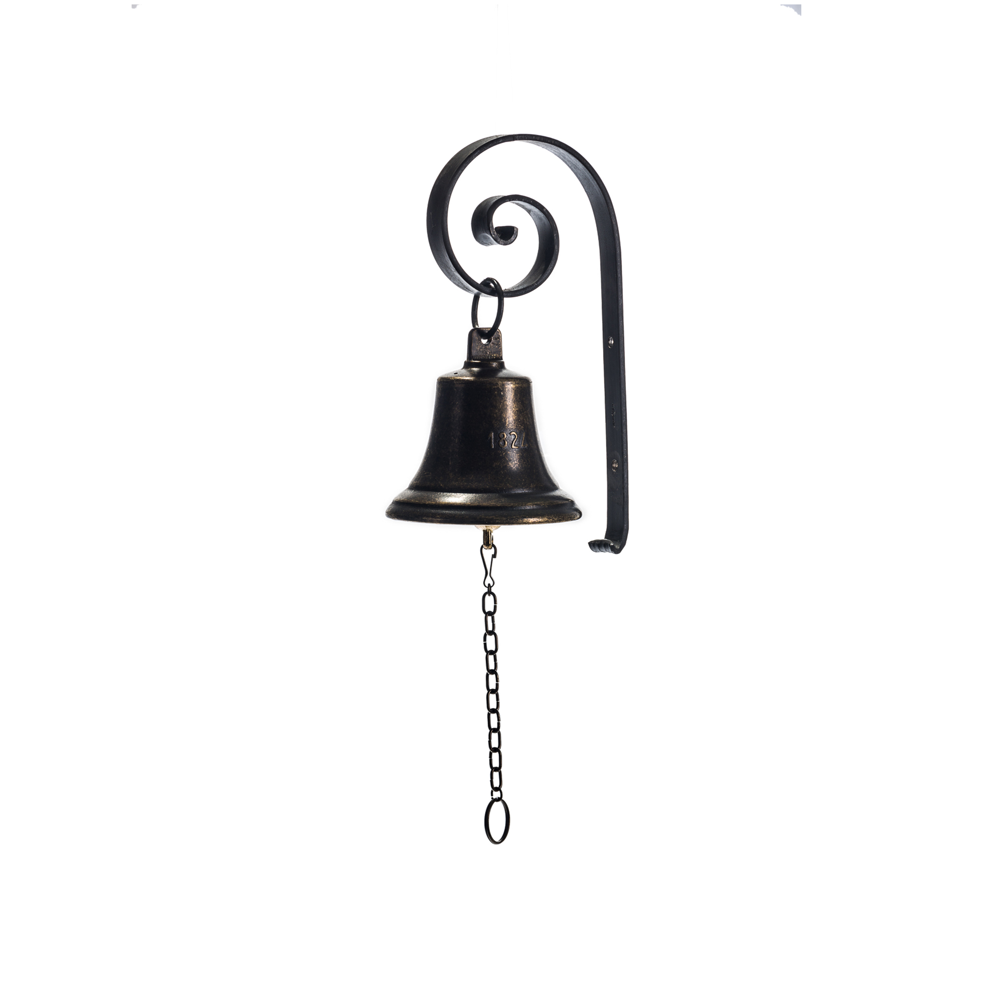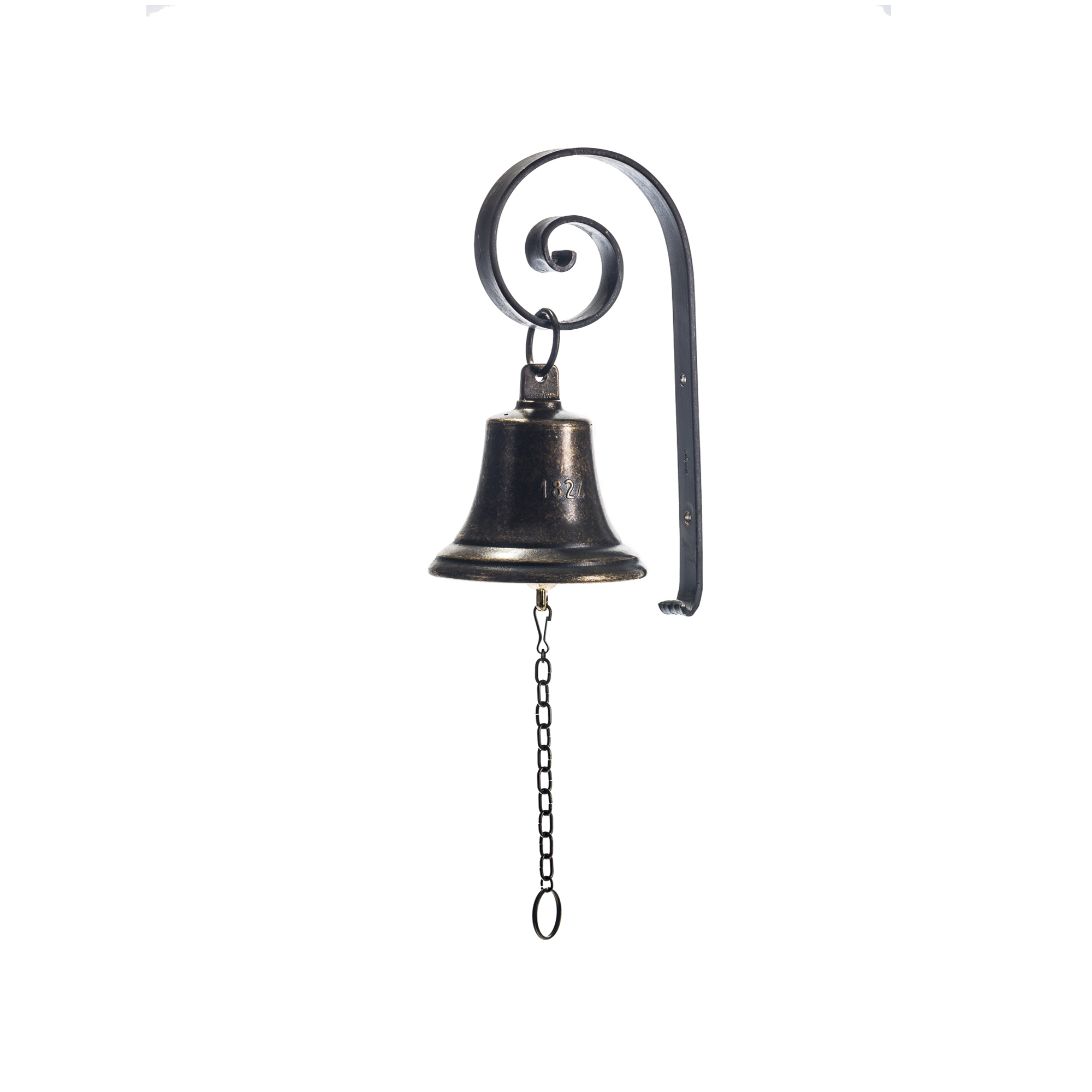 Bronze wall hanging bell diam. cm.8, with wrought iron support.