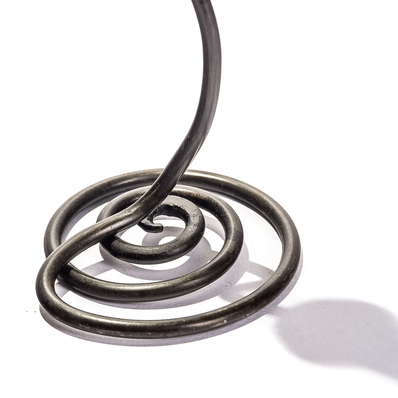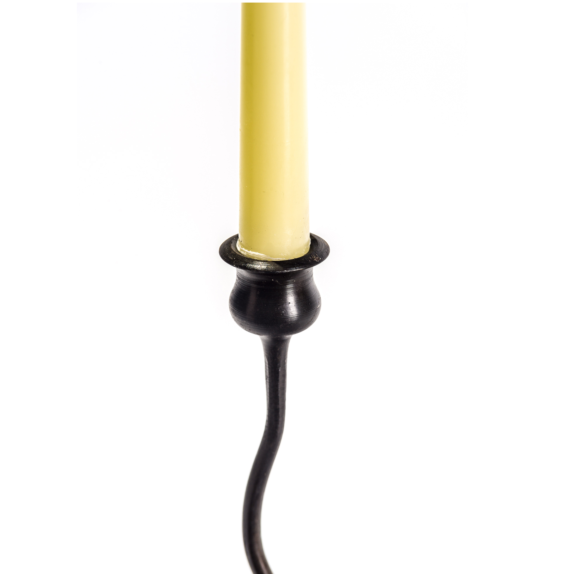 Candeliere da tavolo in ferro battuto a una fiamma con fusto ondulato e piedistallo a ricciolo. Adatto per candele lunghe.