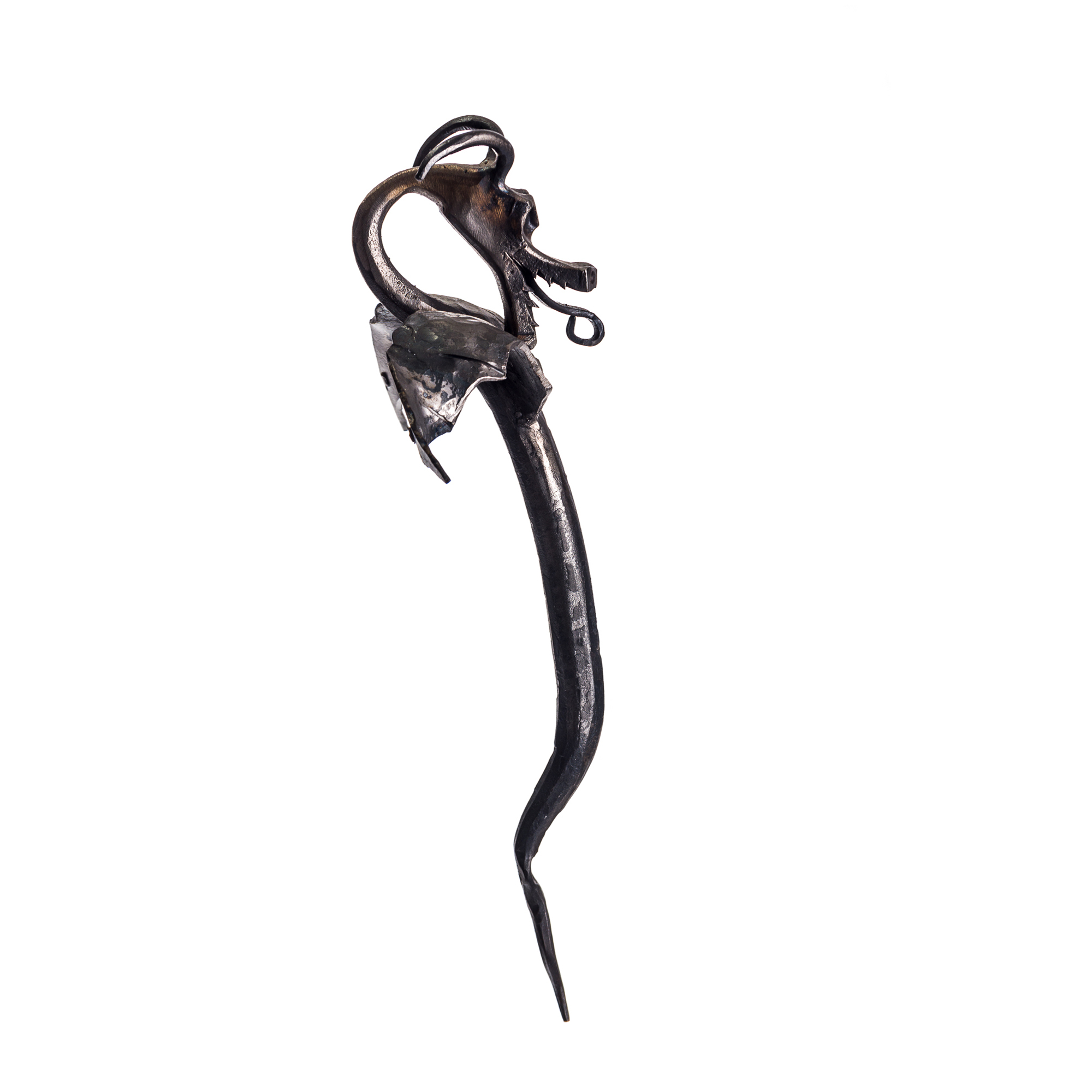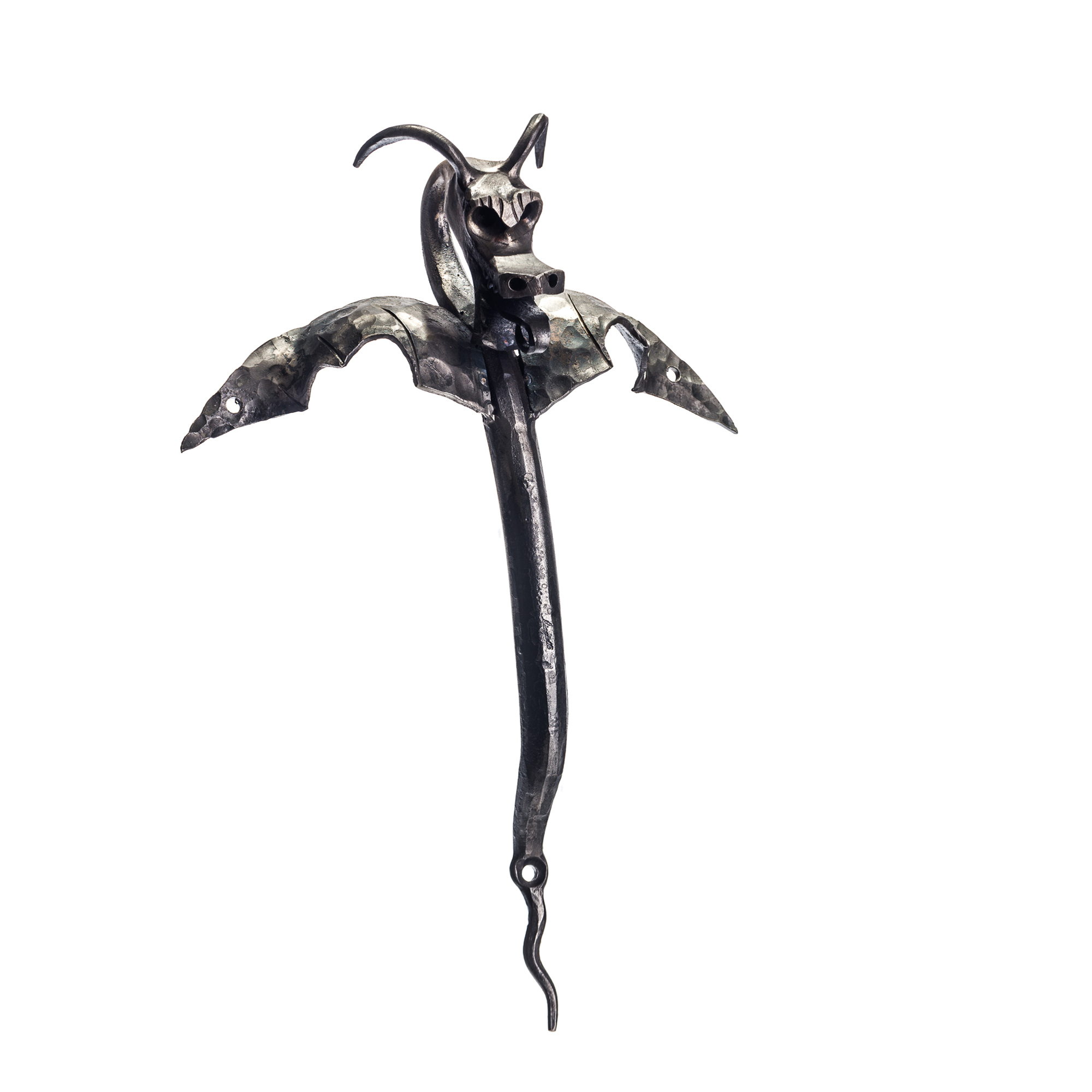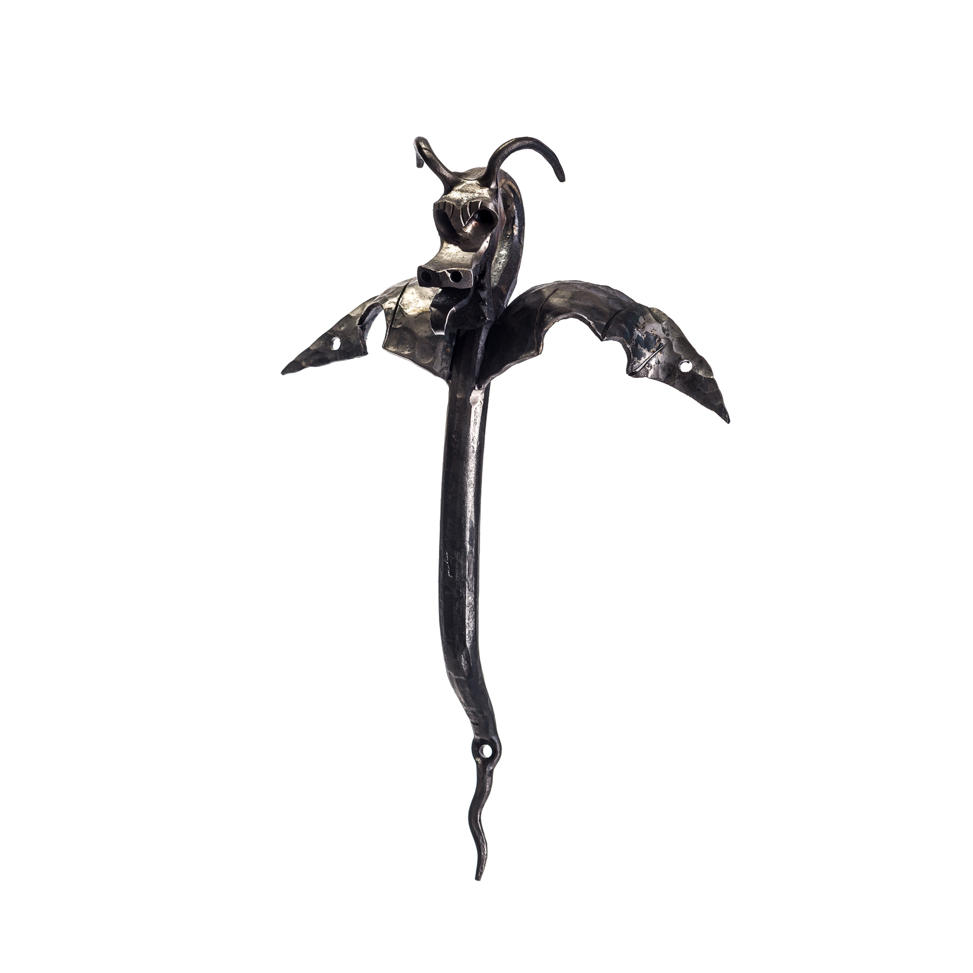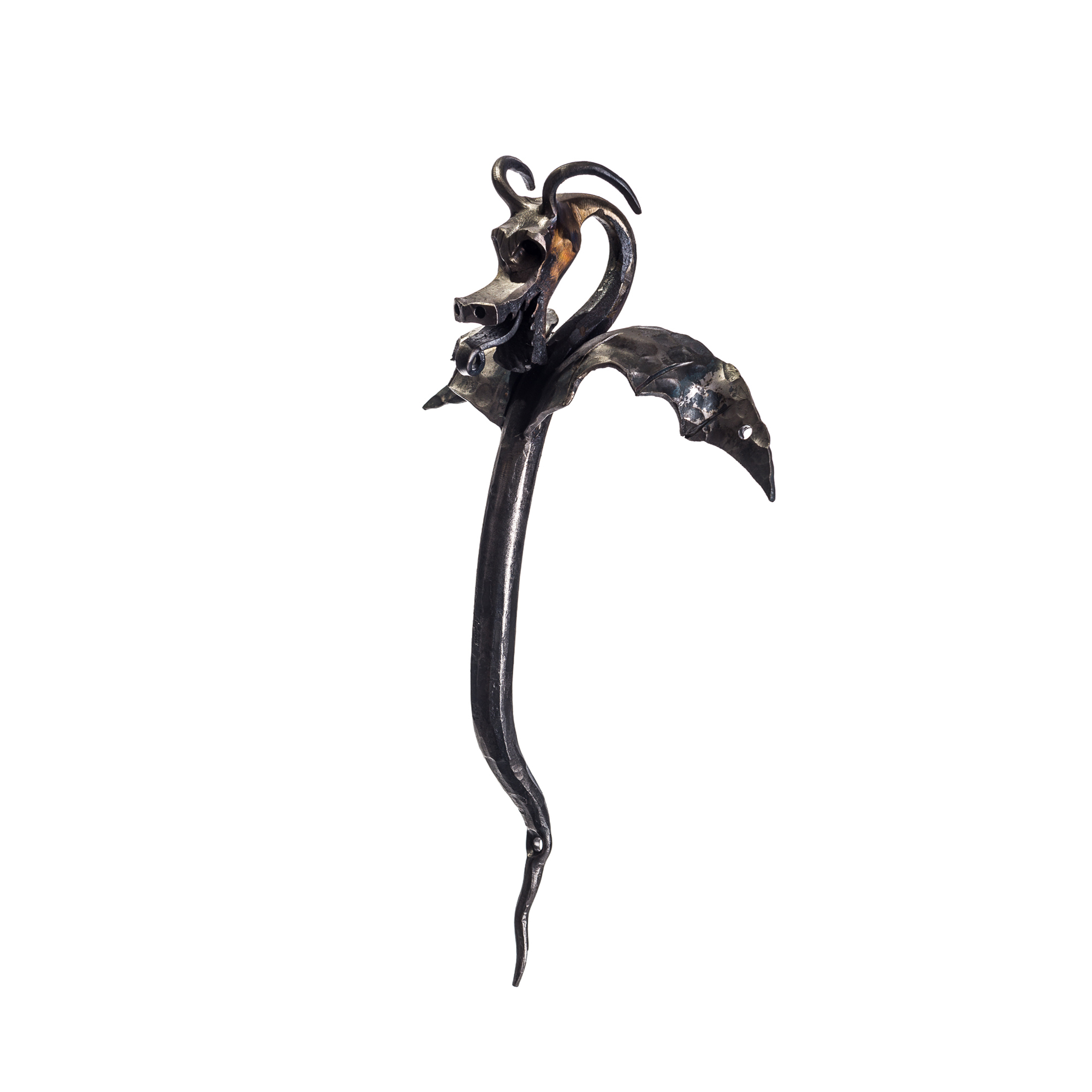 Maniglia in ferro battuto con drago alato.